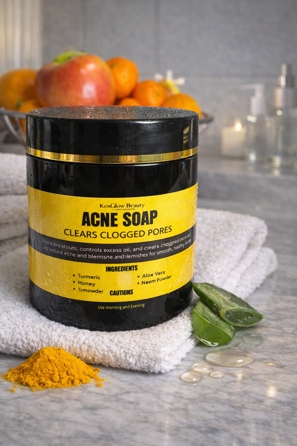 The Acne Soap is specially formulated to help cleanse the skin, control excess oil, and clear clogged pores that can lead to breakouts. Enriched with natural ingredients like turmeric, honey, aloe vera, and neem powder, it helps soothe irritated skin while targeting acne and blemishes. This gentle yet effective formula supports clearer, healthier-looking skin and leaves your face feeling clean, refreshed, and balanced with regular use. ✨