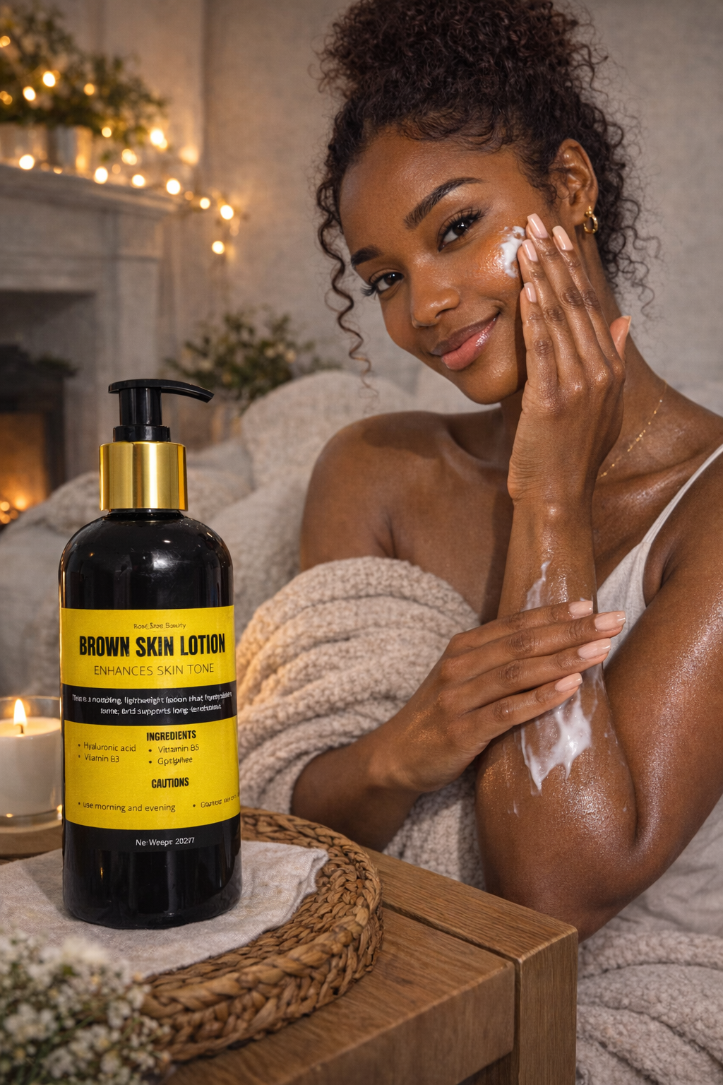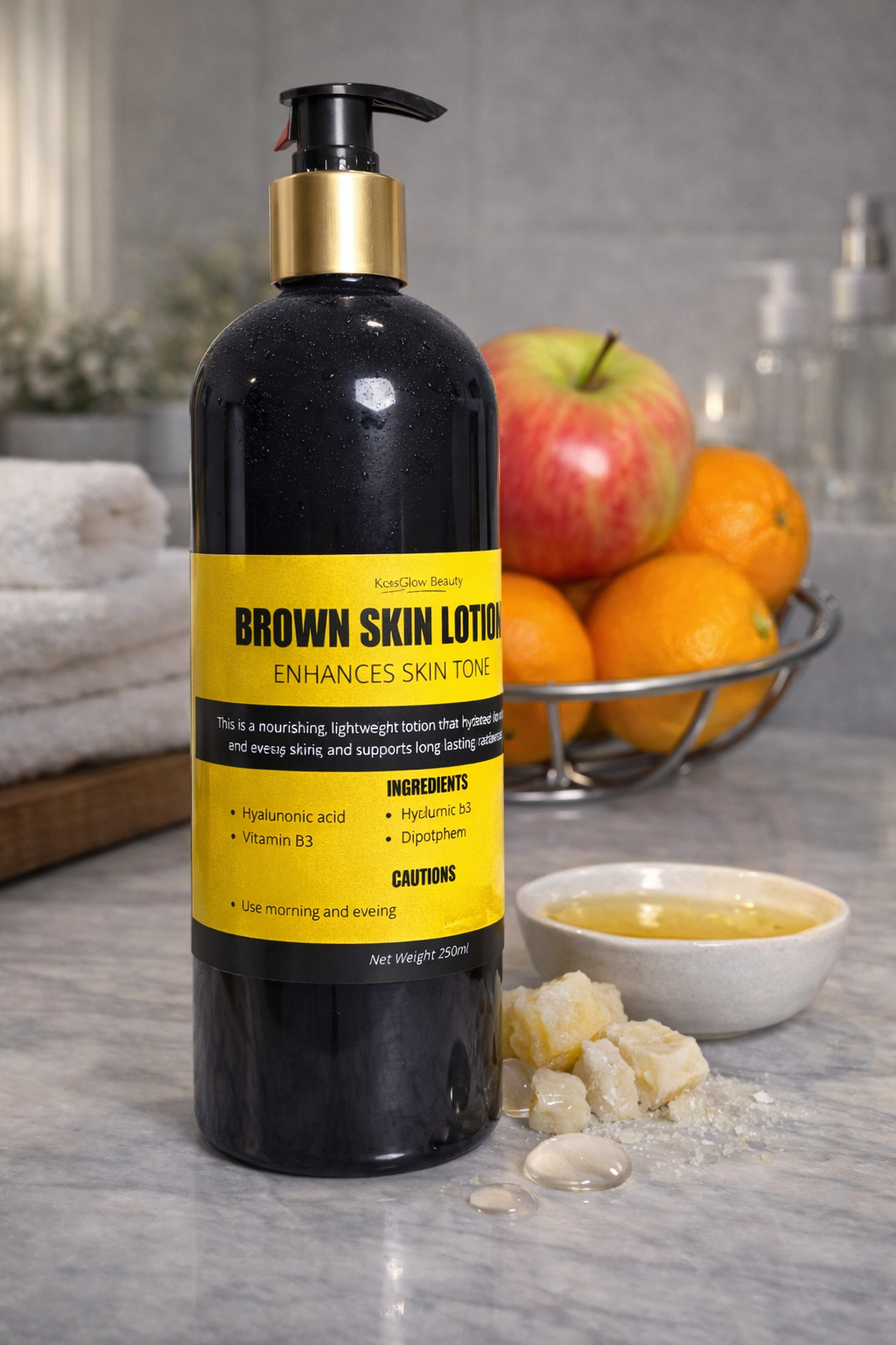 The Brown Skin Lotion is a nourishing, lightweight formula designed to hydrate and enhance the natural beauty of brown skin. Enriched with hyaluronic acid, vitamin B3, and vitamin B5, this lotion helps maintain moisture, improve skin texture, and support an even, healthy-looking skin tone. Its smooth, fast-absorbing formula leaves the skin feeling soft, refreshed, and radiant while promoting long-lasting hydration for everyday skincare. ✨
